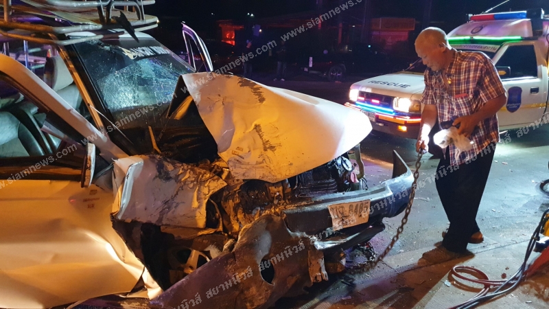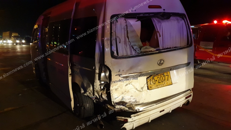 รถตู้แสวงบุญกลับจาก วัดไอ้ไข่ ถูกกระบะเสยยับ เจ็บระนาว